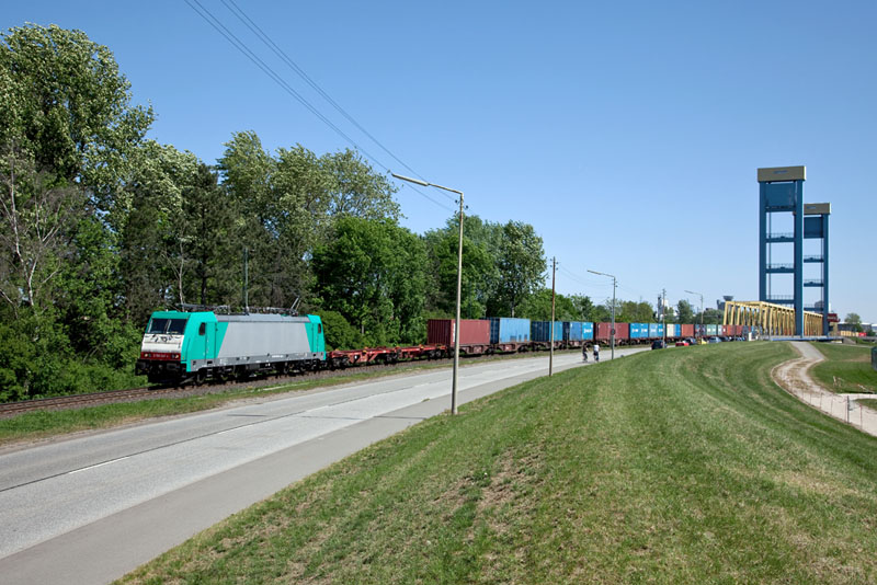 dem Passieren der Kattwykbrücke durchfuhr die E 186 138 die grüne