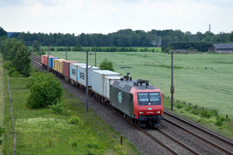 Einen modellbahngerechten Containerzug hatte die 145 084-0 (ex. 481 002) der ITL am Haken! Ramelsloh, 25. Juni 2011 |