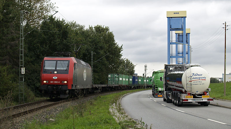 Paar Minuten später hatte die 481 002-4 der ITL die Kattwykbrücke im Hintergrund passiert und fuhr weiter nach Hamburg Waltershof. 11. September 2007 | ||