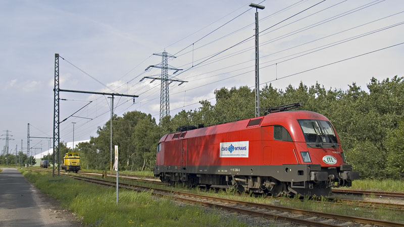 In Hamburg Hohe Schaar stand dieser Taurus der Österreichischen Bundesbahnen, die 1116 236-9 – die zur Zeit bei der Privatbahn ITL im Einsatz ist – abgestellt. 14. Juli 2007 | ||