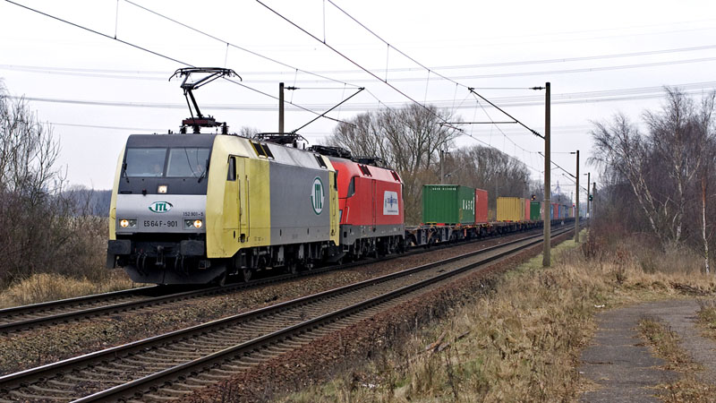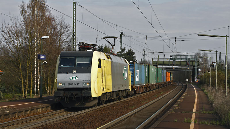 ES 64 F-901 der ITL mit ihrem Containerzug aus dem Hamburger Hafen. Winsen (Luhe), 26. März 2009 |