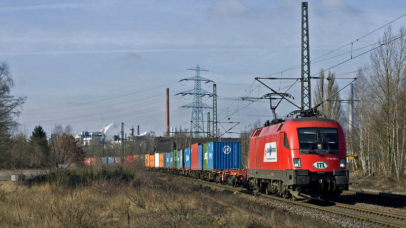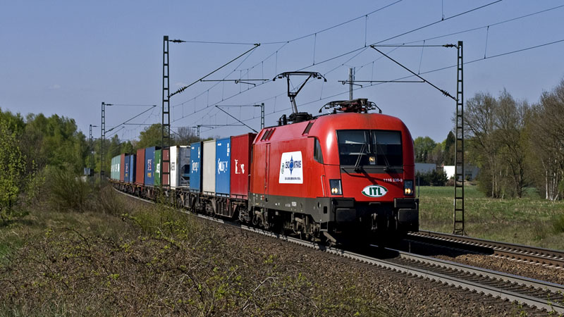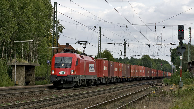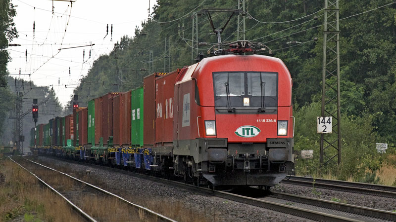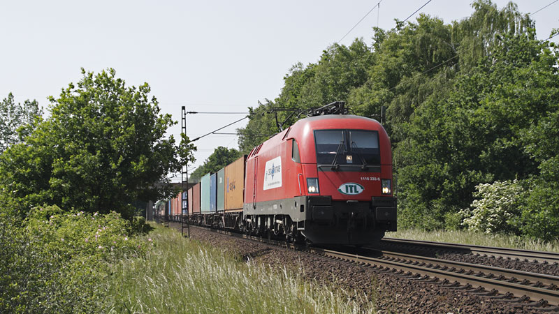 Taurus in ITL-Diensten – 1116 233-6 – mit einem Containerzug
