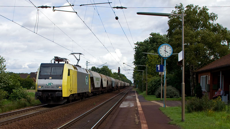 ES 64 F-902 der ITL fuhr via Hohe Schaar gen Osten, um das Kopfmachen