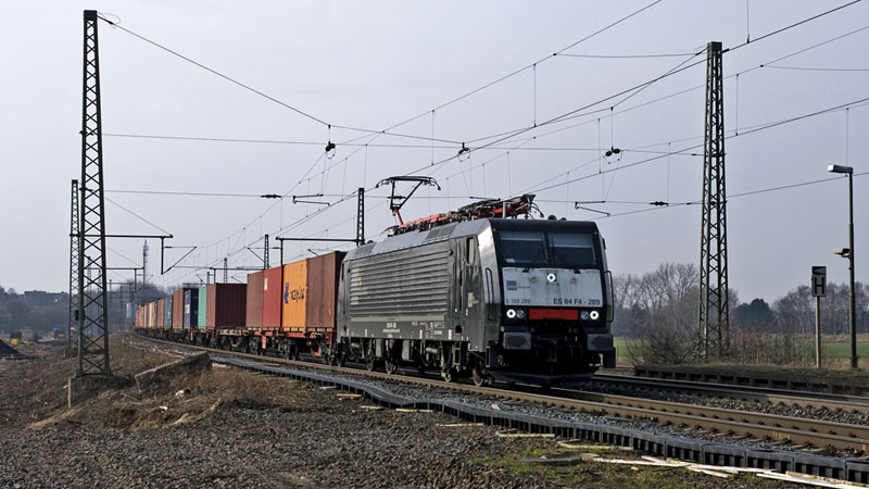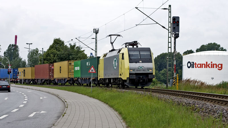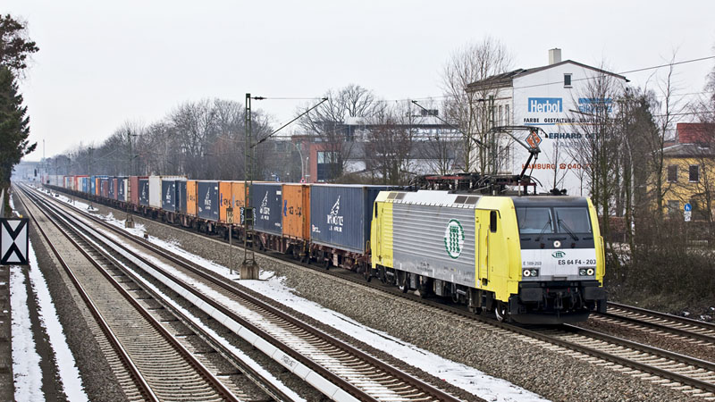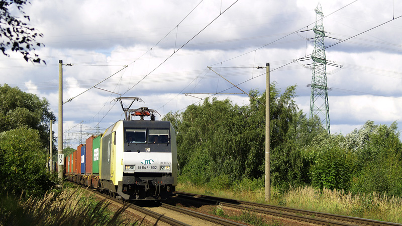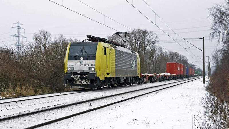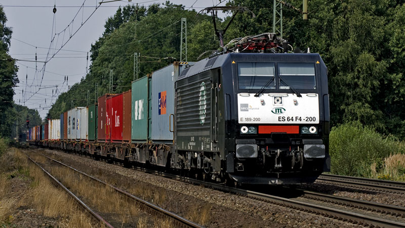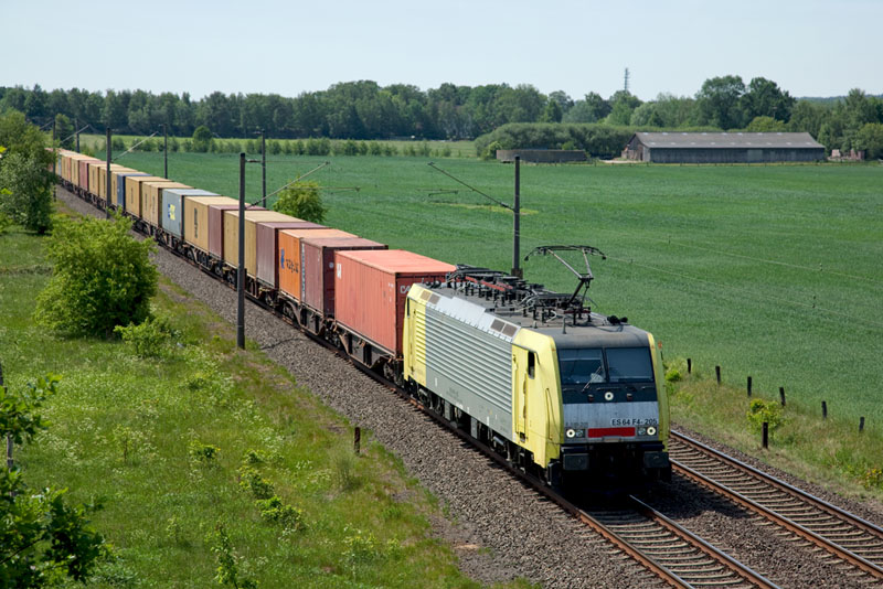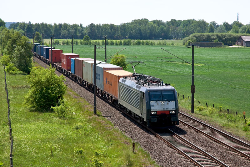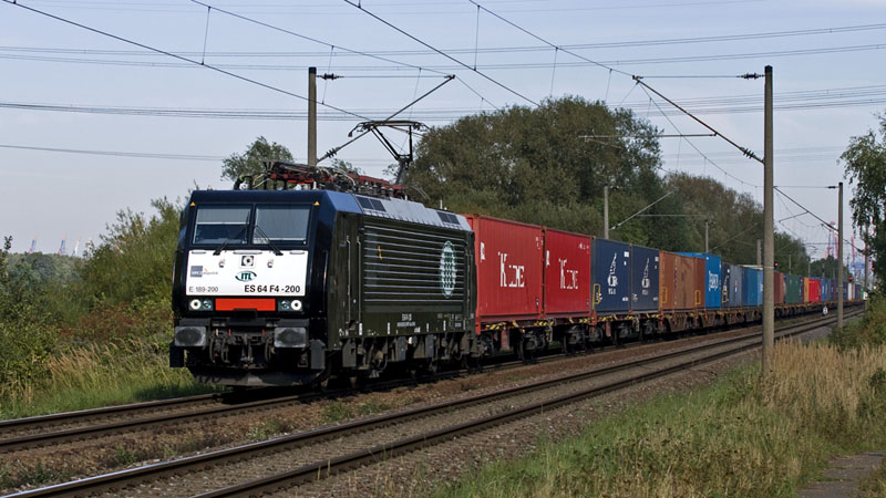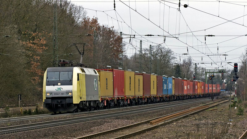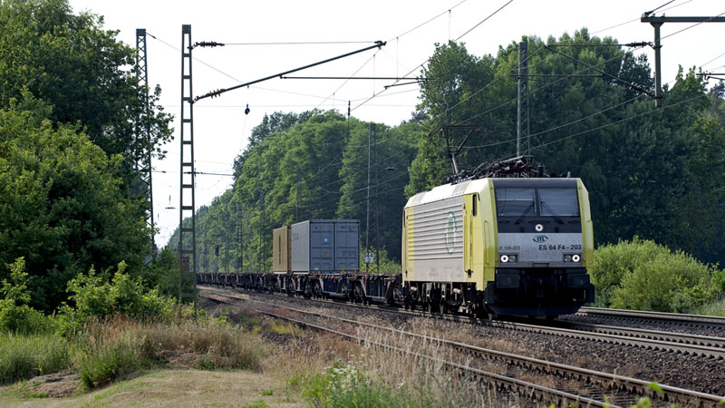 schwarze ES 64 F4-200 der ITL nahm gleich mit ihrem Containerzug die