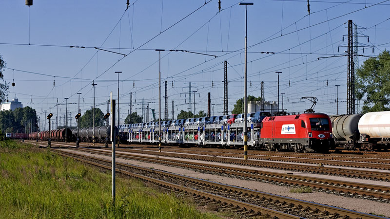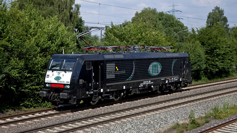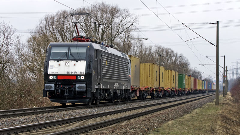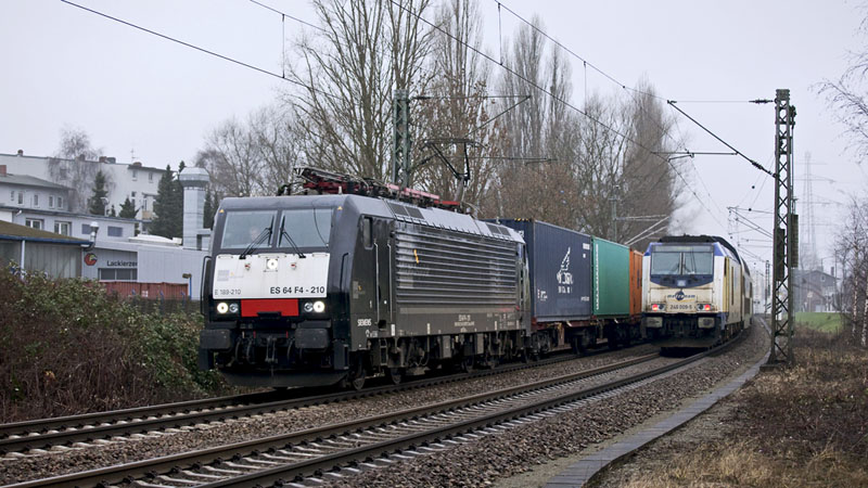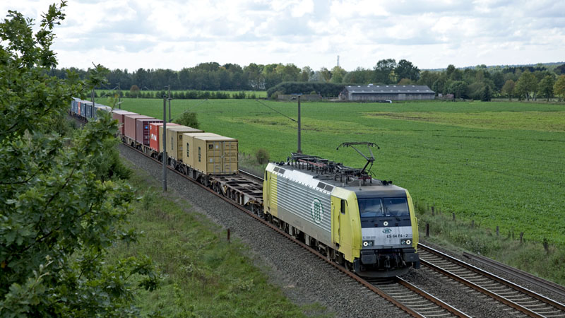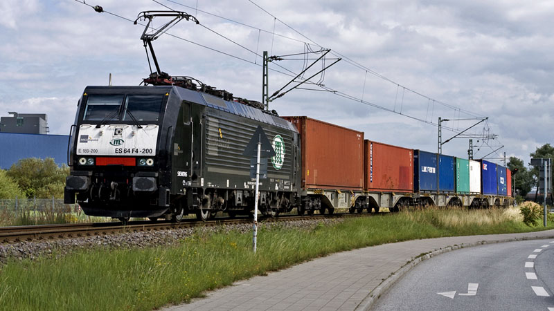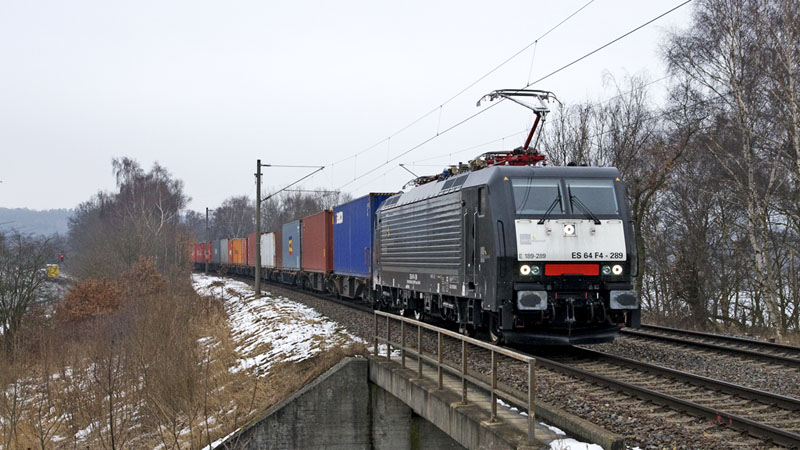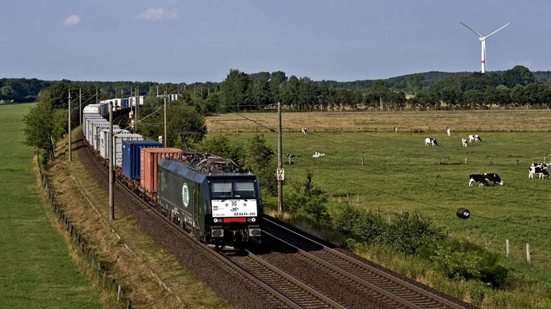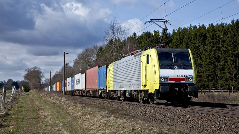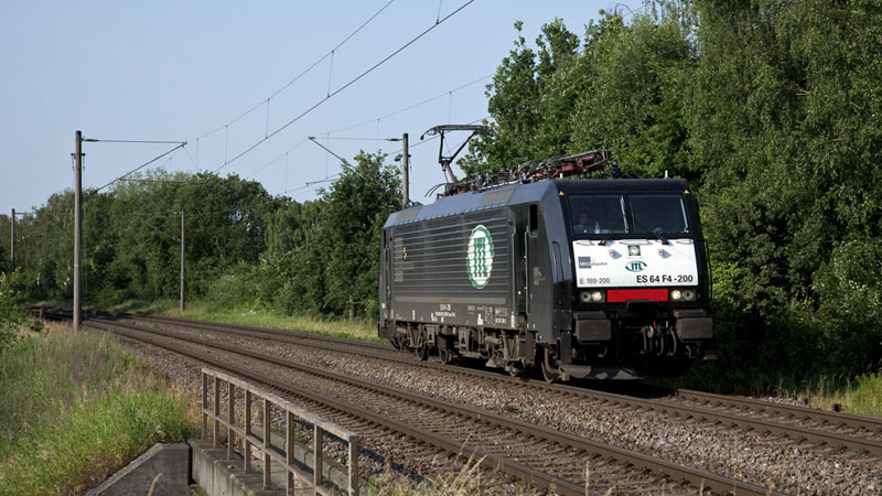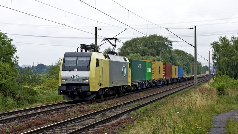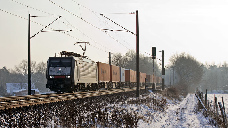 schwarze ES 64 F4-200 der ITL nahm gleich mit ihrem Containerzug die