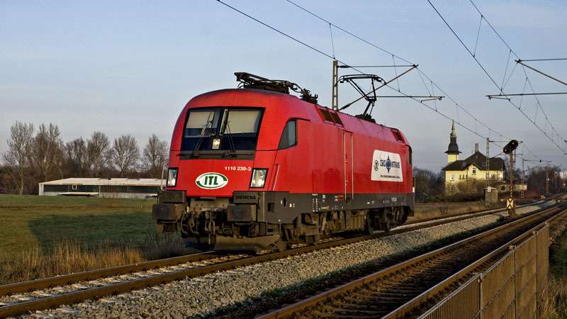 der Gegenrichtung donnerte die 1116 239-3 der ITL mit ihrem fast artreinen