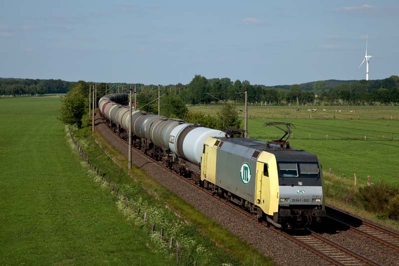 die ITL ES 64 F-901 hatte einen schweren Kesselwagenzug von Hohe Schaar