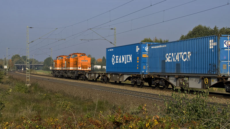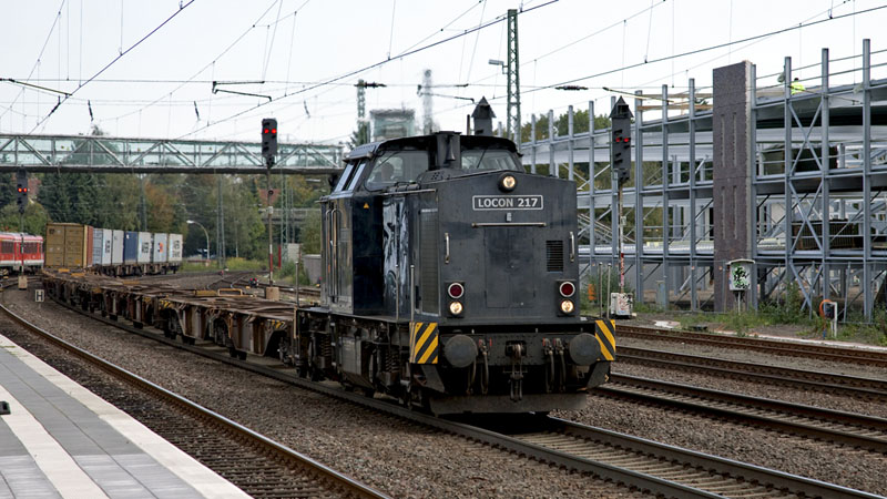 Das "schwarze Schaf" unter den LOCON-Loks, die 217 mit einem Containerzug von Hamburg.