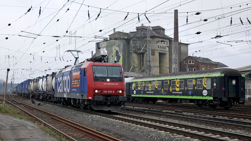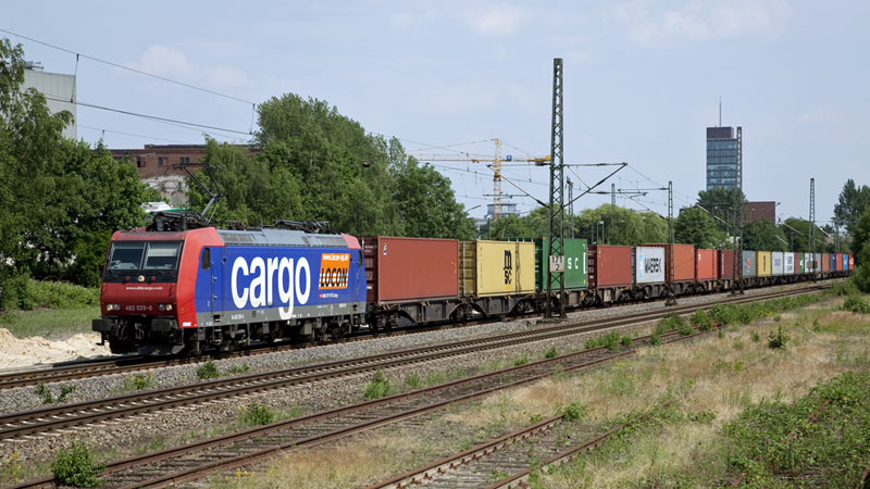 Die für LOCON fahrende 482 029-6 der SBB Cargo mit einem Containerzug von Hamburg.