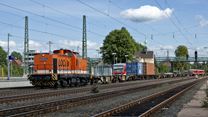 Der Container-Kurzpendel mit der LOCON Diesellok 211.
