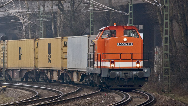 Nun kam die LOCON 212 mit einem kurzen Containerzug von den Containerterminals.