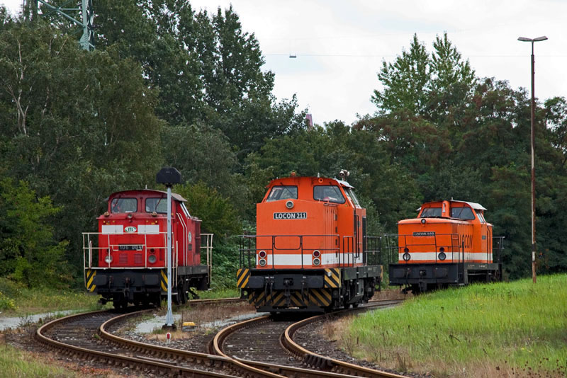 Pause für die Ost-Rangierloks – links ITL 106 004, mittig LOCON 211 und rechts LOCON 103.
