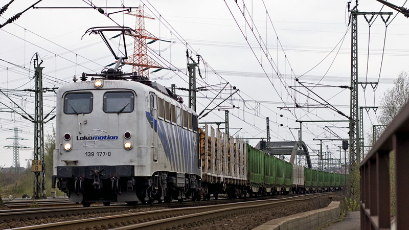 Holzzug nach Wismar mit der Lokomotion 139 177-0 – im Auftrag von