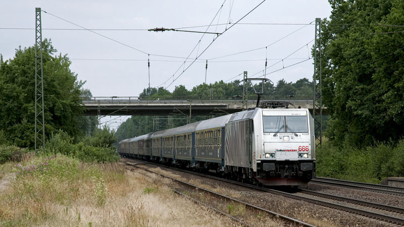 Das Höllenzebra der Lokomotion mit dem 12-Wagensonderzug DPE 1779 Hamburg - München-Ost…