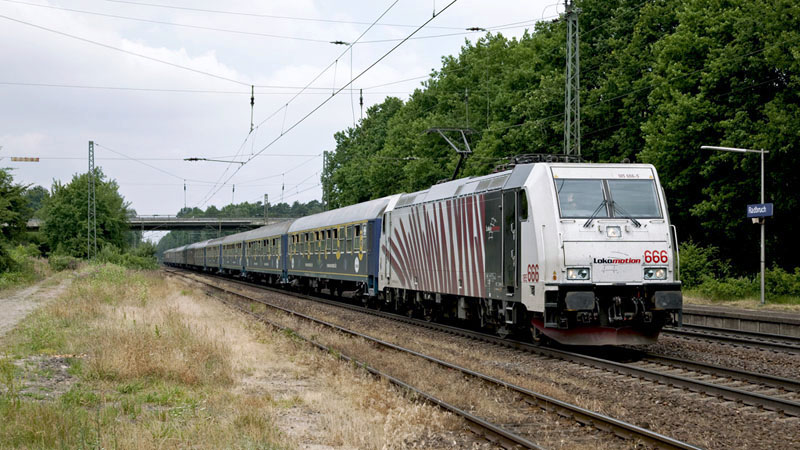 Das Lokomotion-Zebra 185 662 eilte mit ihrem Zug gen München.