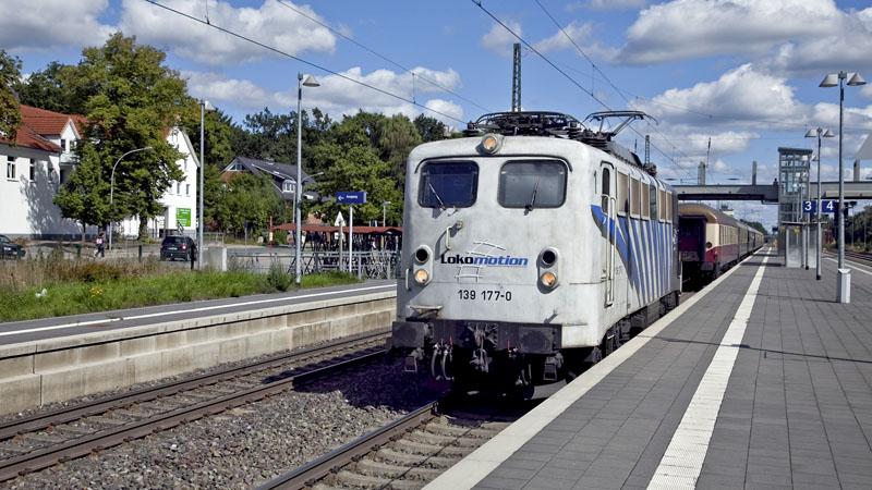 Diesen Zug schob die rüstige 139 177-0 von Lokomotion nach.