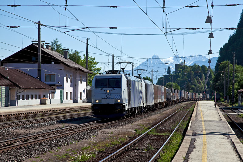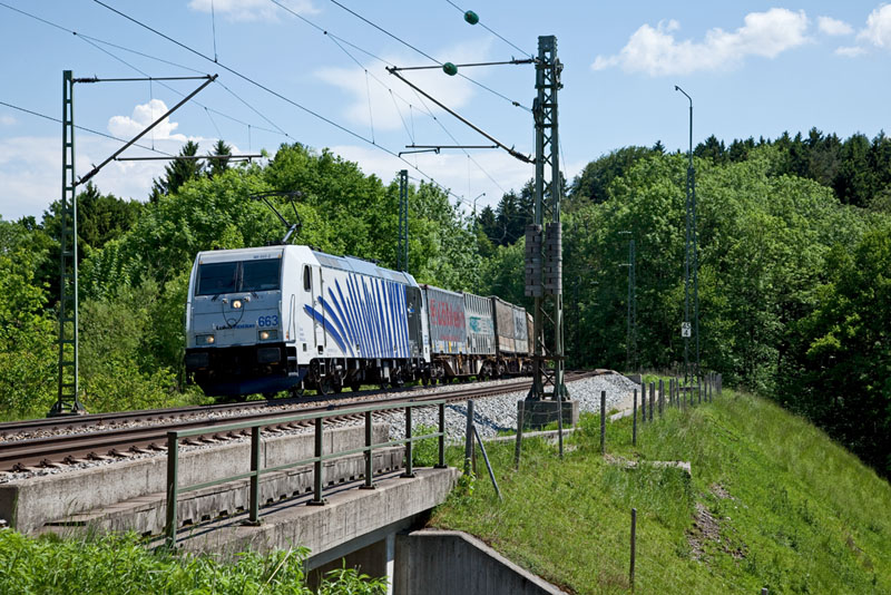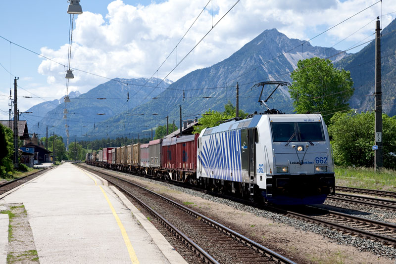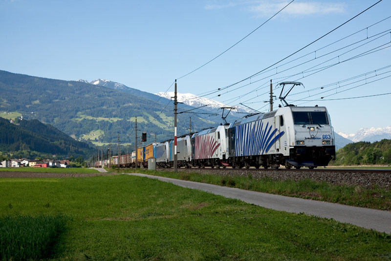 Lokomotion 185 665 und 186 105 überholten diesen Zug.