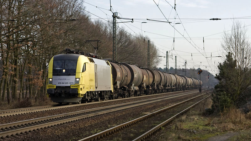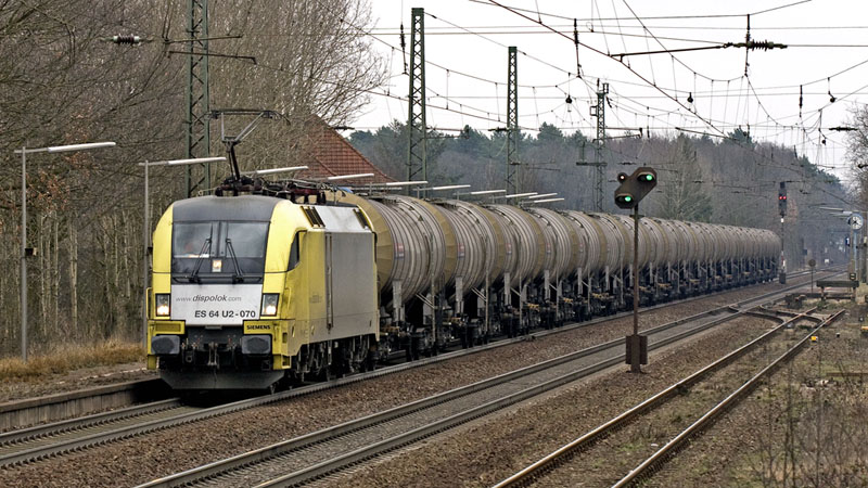 nagelneuen Kesselwagen und der ES 64 U2-070 bestand der Zug, den die