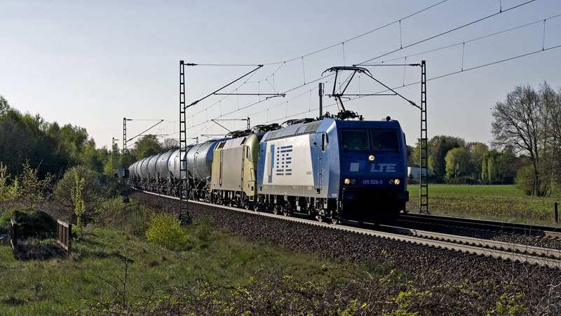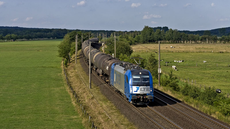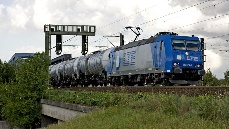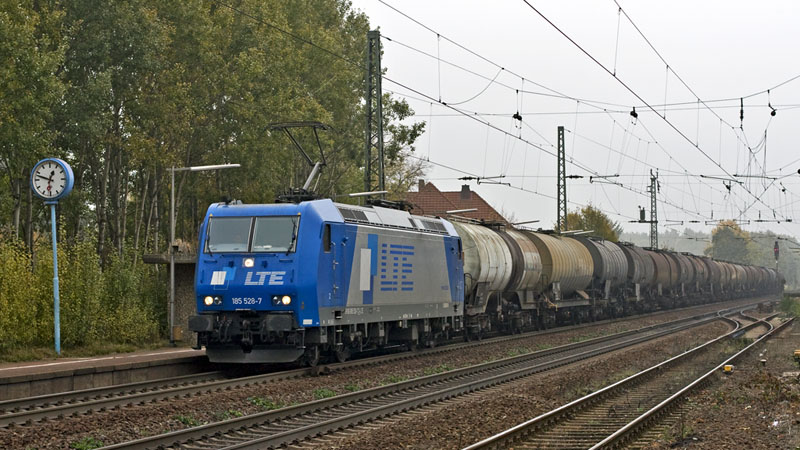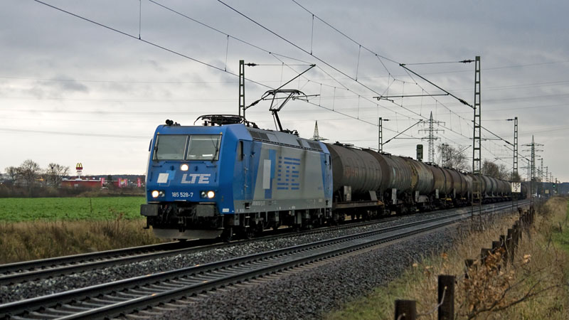 Die 185 528-7 der LTE mit dem leeren Kesselwagenzug nach Hamburg.