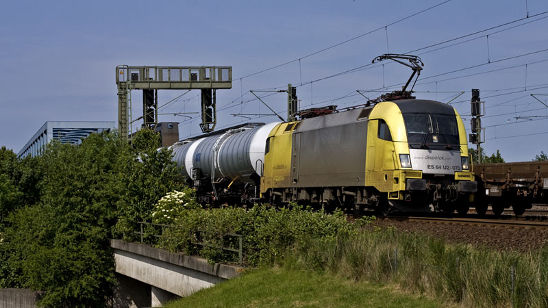 ES 64 U2-070 hatte nagelneue GATX-Kesselwagen zu ziehen, als sie den
