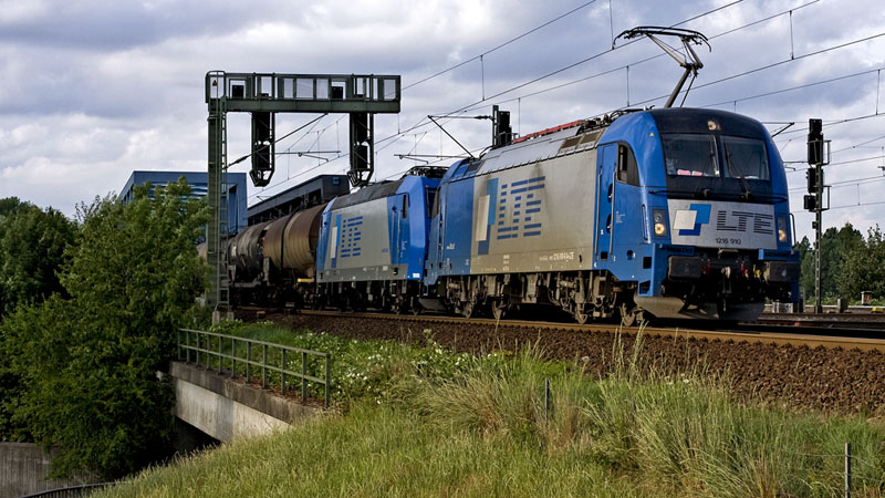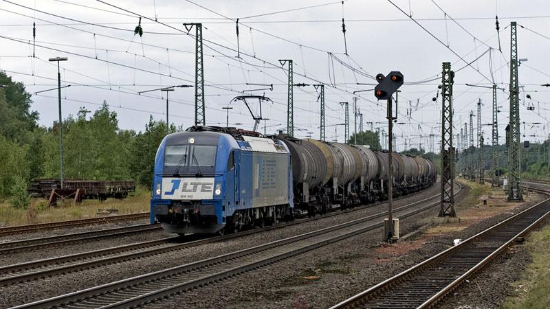 moderne 1216 910 der LTE mit dem Kesselwagenzug von Passau nach Hamburg-Hohe