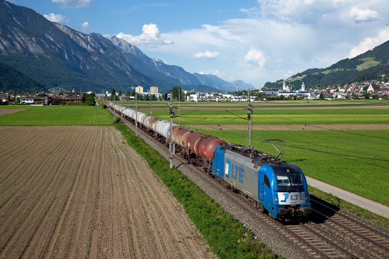 Die schicke 1216 910 der LTE fuhr mit einem Kesselwagenzug in Richtung Innsbruck.