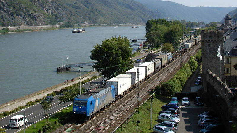 das wunderschöne Rheintal in Boppard fährt eine der LTE 185er