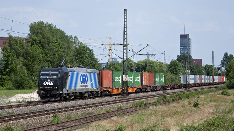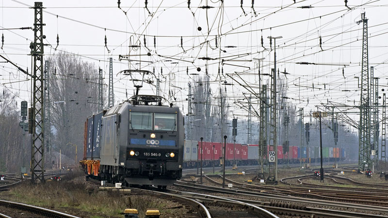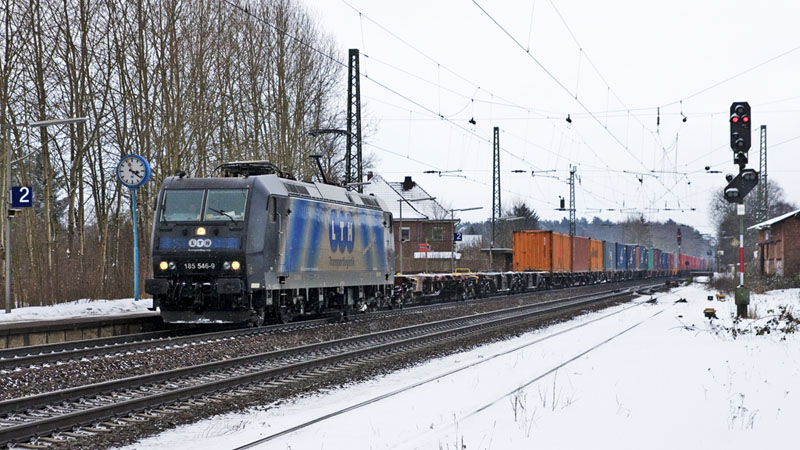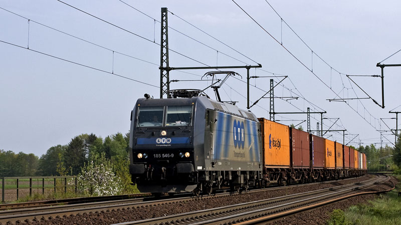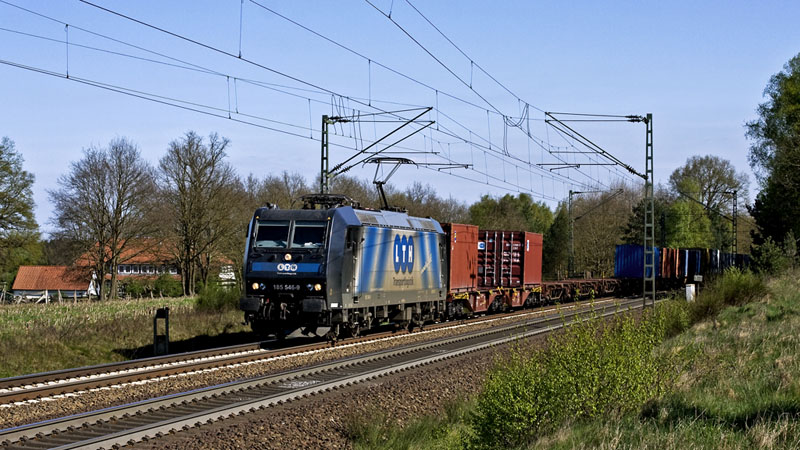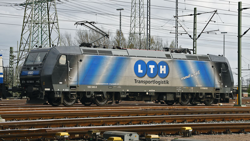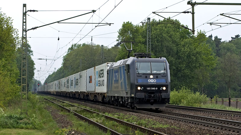Die LTH 185 546-9 mit ihrem Containerzug nach Hamburg.