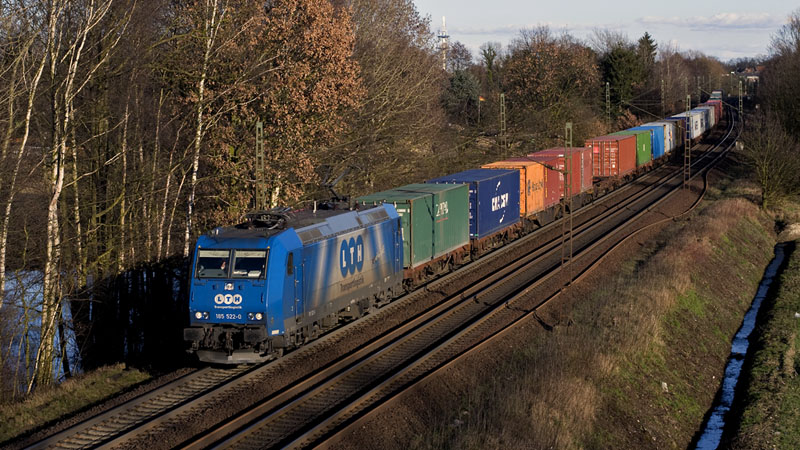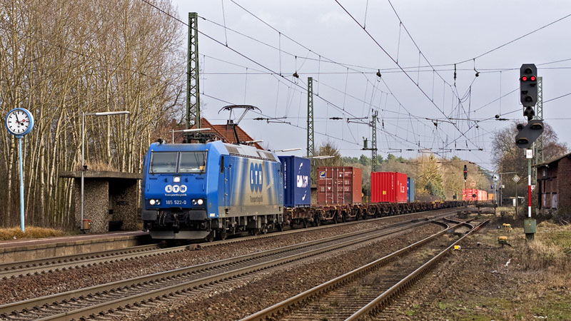 Containerzug hatte die 185 522-0 des OHE-Partners LTH nach Hamburg zu
