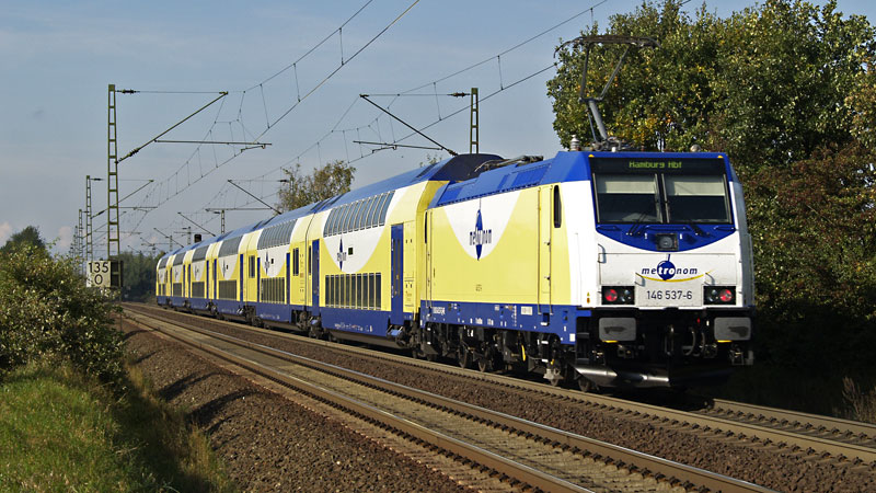 ME 146 537-4 kam mit ihrem metronom aus dem Hamburger Hbf nach Bremen