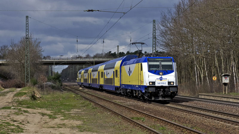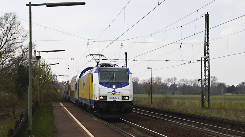 Der MEr nach Lüneburg rollte mit der 146 539-2 ein. Radbruch, 20. März 2011 |