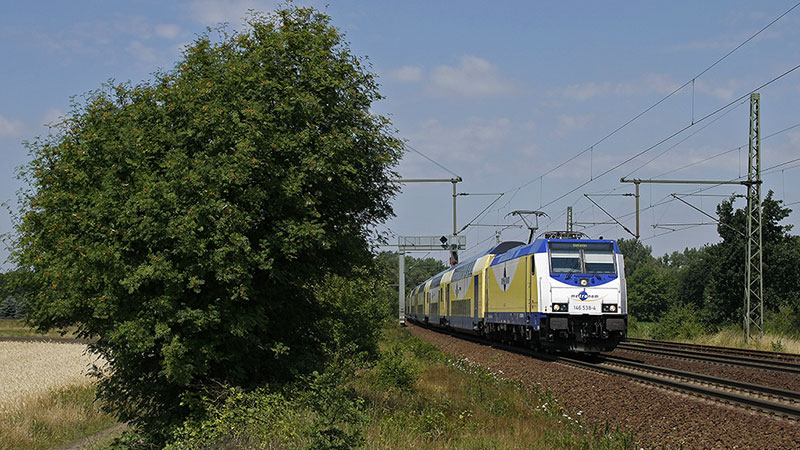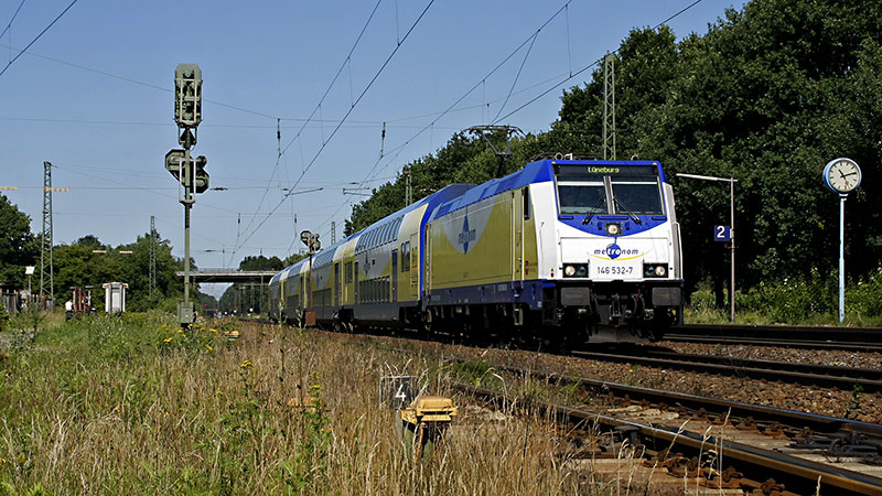 bremste die 146 531-9 ihren metronom nach Uelzen in dem stark zugewucherten