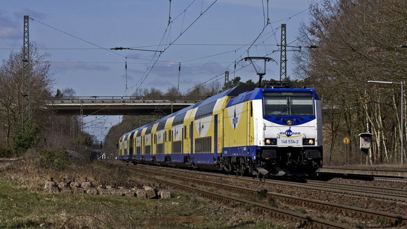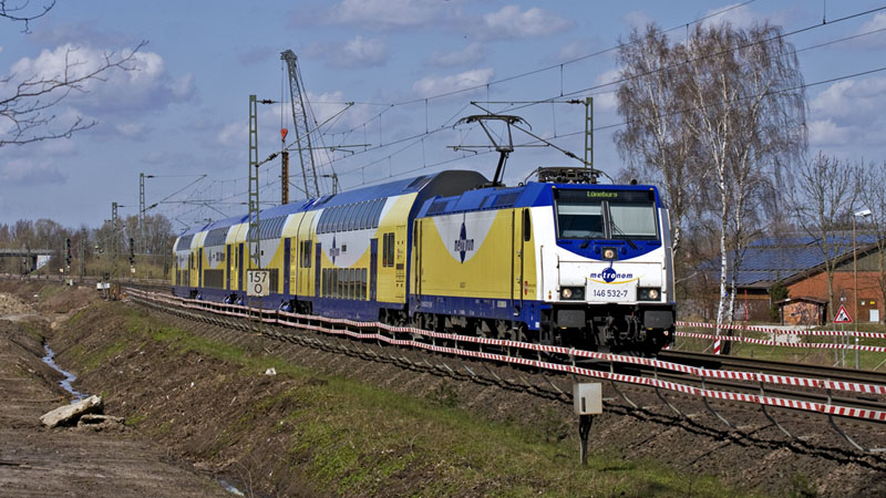 schnelle metronom nach Uelzen mit der 146 534-3. Radbruch, 20. März 2009 |