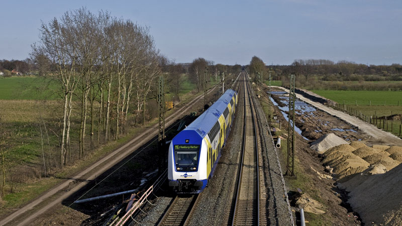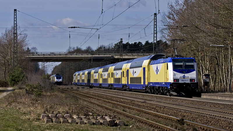 zweier metronom Regional-Züge – linkerhand der nach Tostedt