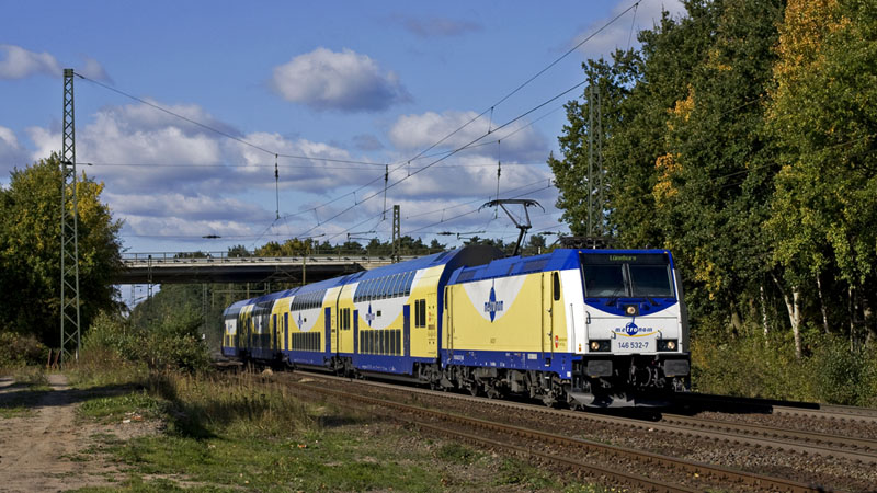 Der MEr von Hamburg-Harburg nach Lüneburg mit der 146 532-7. Radbruch, 14. Oktober 2009 |