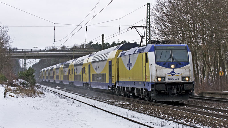 schnelle metronom nach Bremen mit der 146 536-8. Klecken, 27. Februar 2009 |