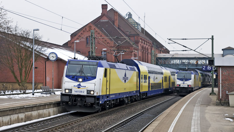zweier MEr-Züge in Stelle. Links 146 532-7 nach Lüneburg und