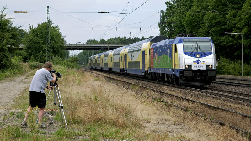 Auch "James Rizzi" schaute vorbei, die 146 535-0 von metronom wurde filmerisch festgehalten. Radbruch, 4. Juli 2010 |