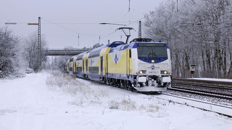 Die 146 535-0 beschleunigte ihren MEr nach Lüneburg nach dem Halt. Winsen (Luhe), 10. Februar 2010 |