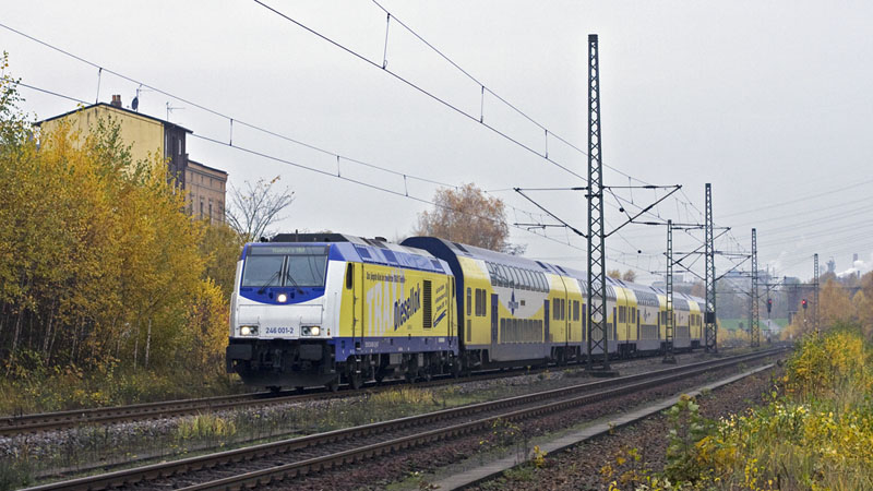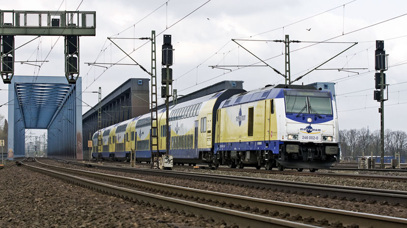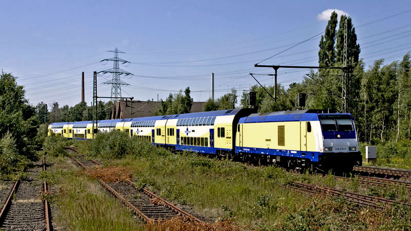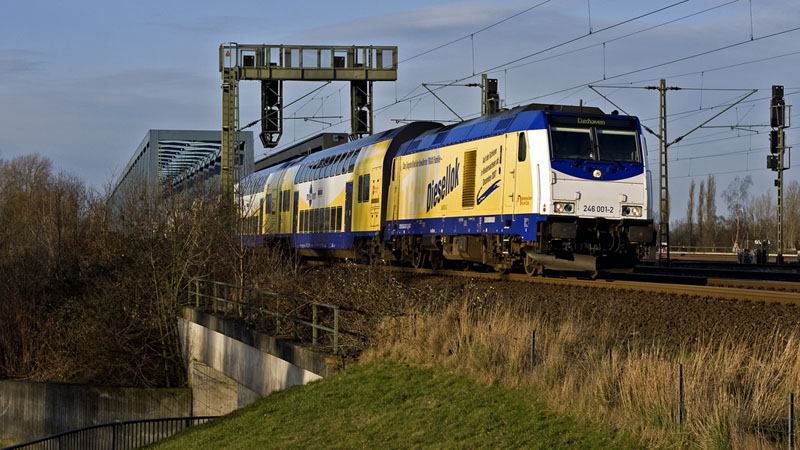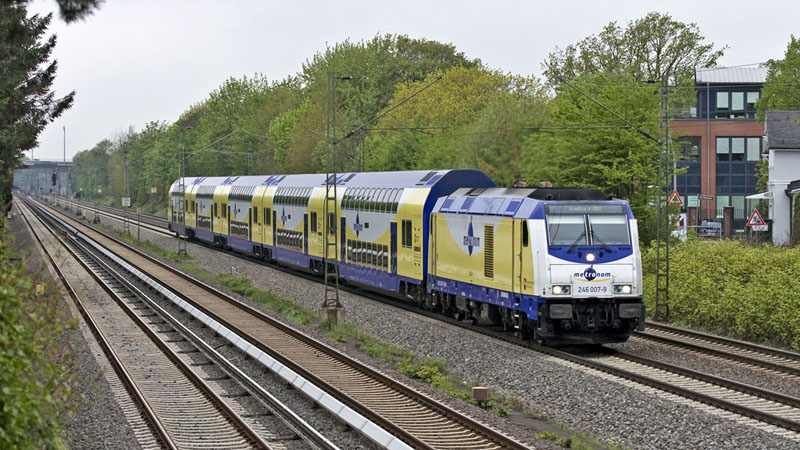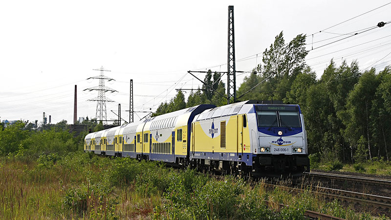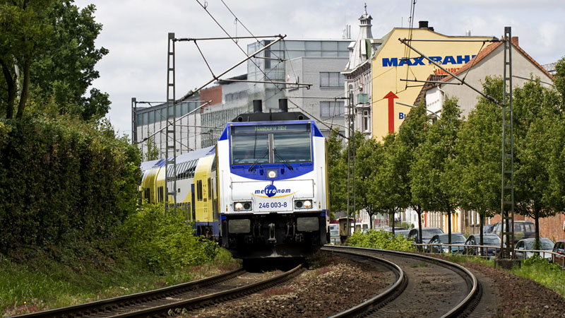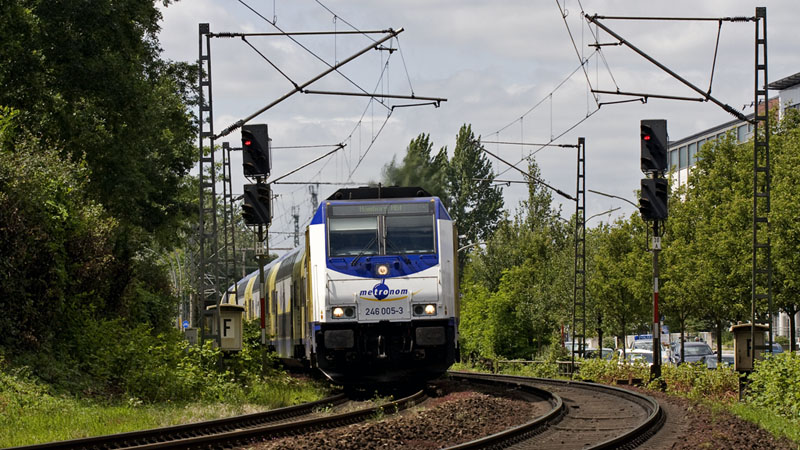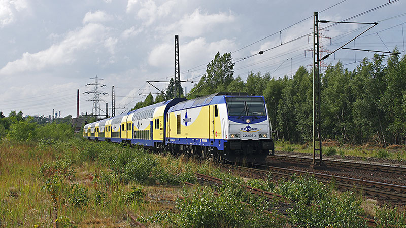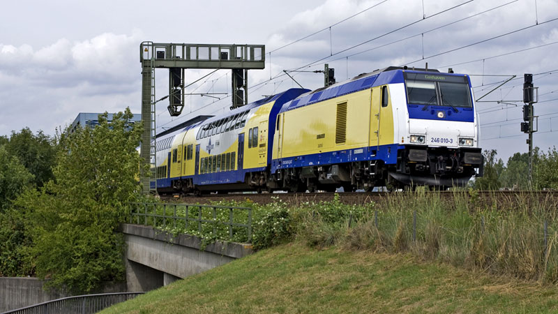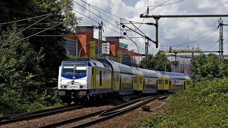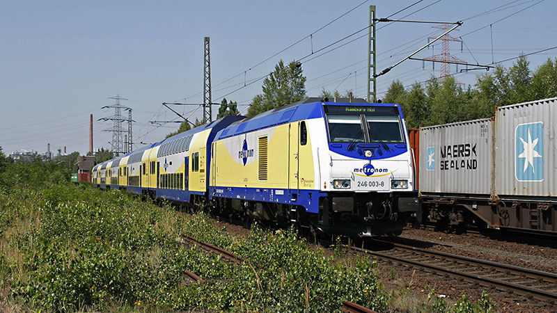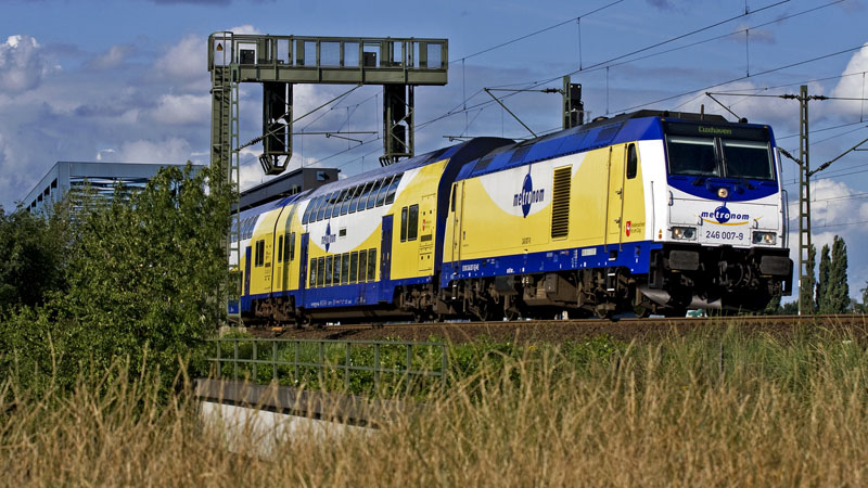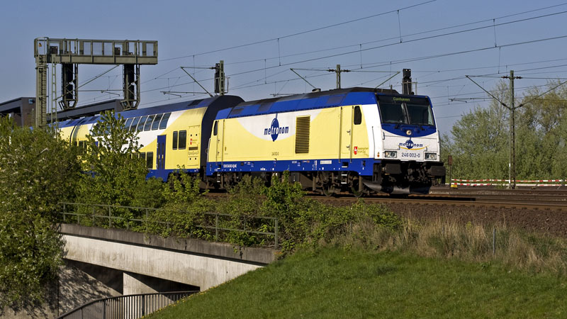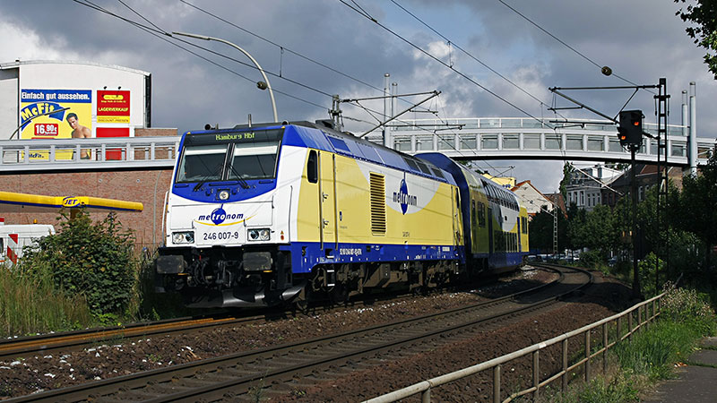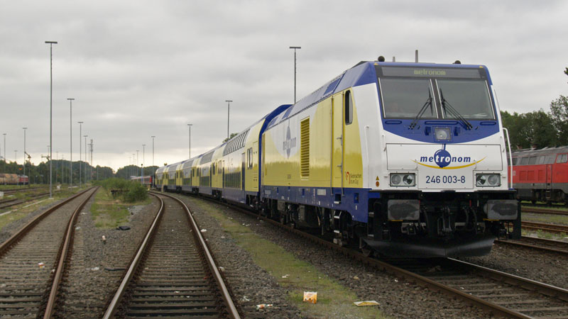 für den metronom leihweise eingesetzte 246 010-3 mit ihrem Zug nach