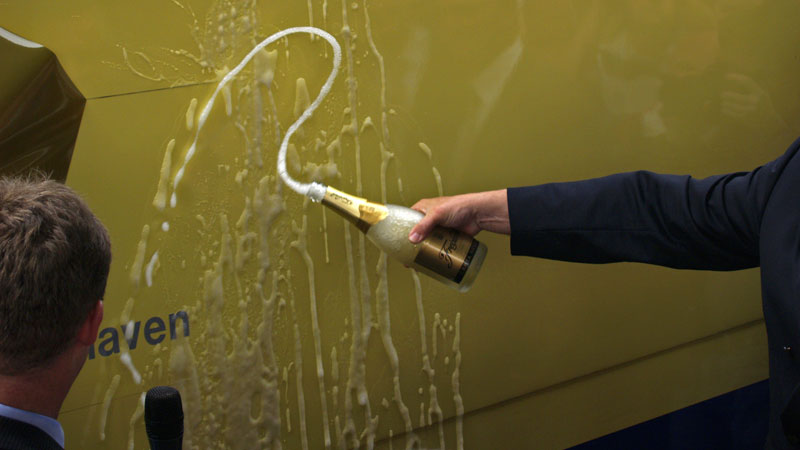 Die Cuxhavener Politprominenz und die metronomer tauften die Diesellok 246 003-8 auf den Namen "Cuxhaven" – spanischer Schaumwein im norddeutschen Tiefland… Cuxhaven, 25. August 2007 | ||