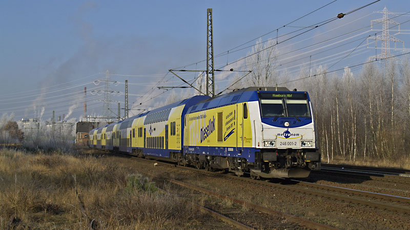 Nur bei dem metronom von Cuxhaven mit der 246 007-9 schien die Sonne! Hamburg-Unterelbe, 6. Dezember 2009 |