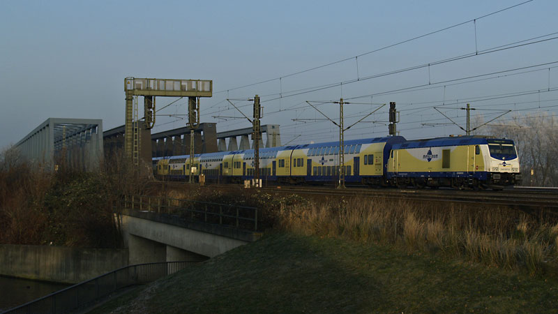 weiterer metronom von Cuxhaven, mit der 246 007-9. Hamburg Süderelbbrücken, 22. Dezember 2007 |