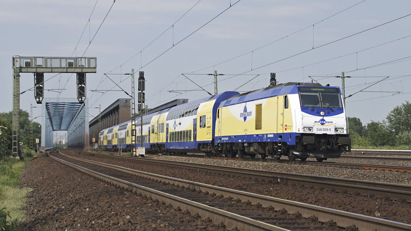 Nun kam der nächste Unterelbe-metronom mit der 246 007-9. Hamburg-Hausbruch, 29. Juni 2010 |