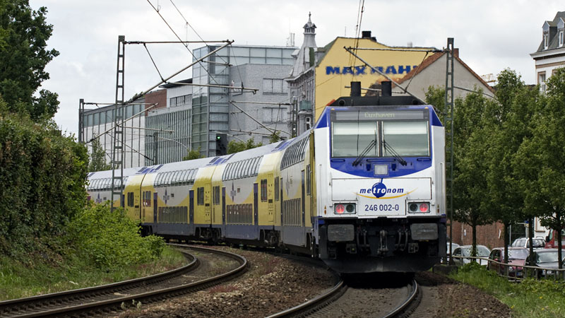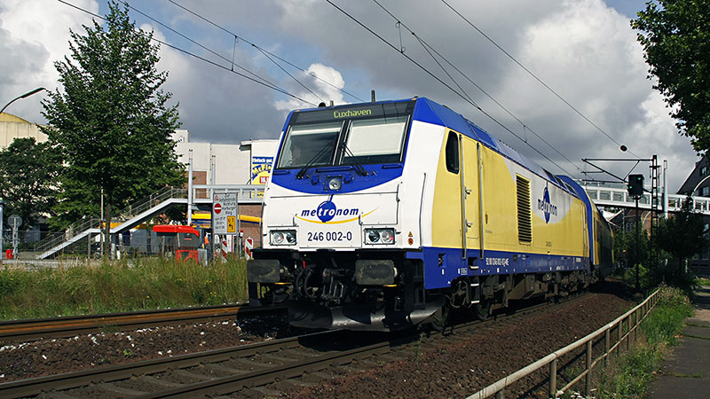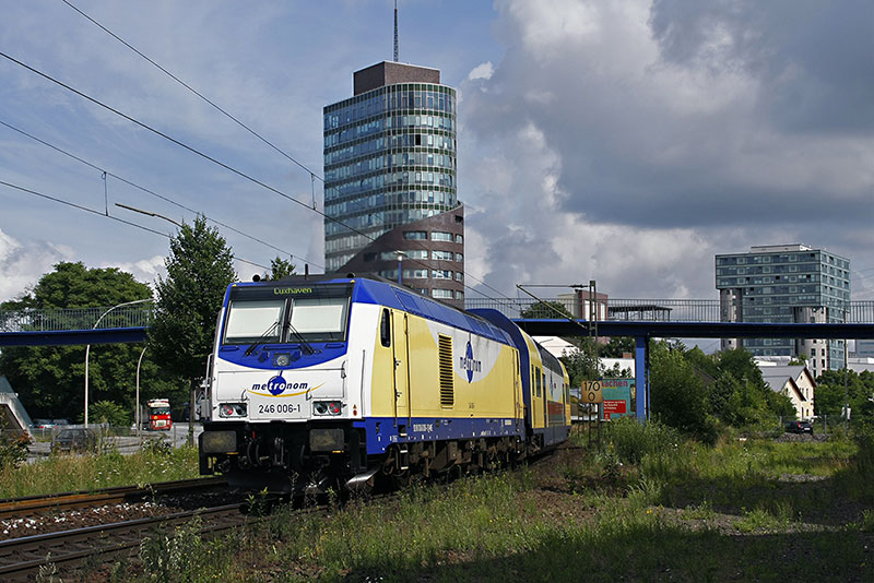 dem Gegengleis fuhr dieser metronom von Cuxhaven mit der 246 002-0 nach