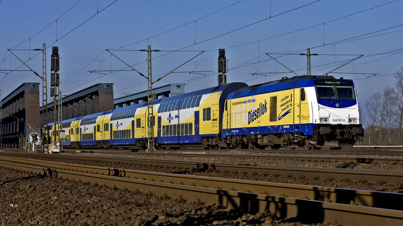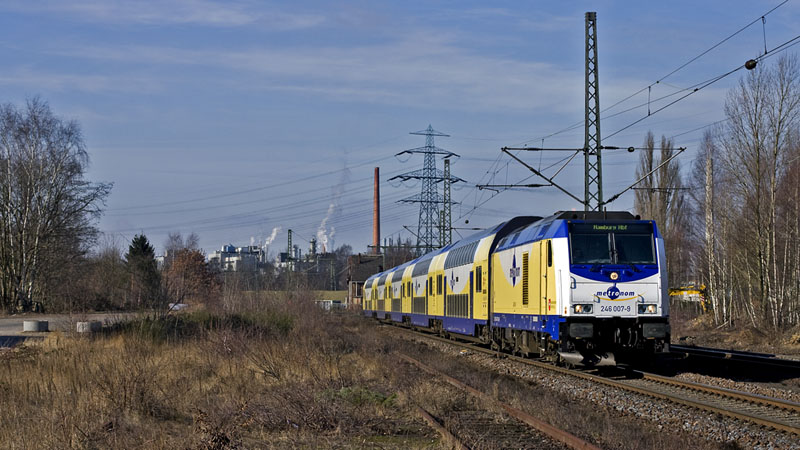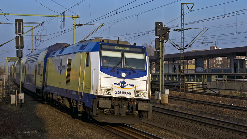 metronom nach Cuxhaven mit der 246 007-9 fuhr an den Unterelbebahnsteig
