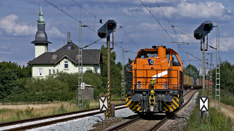 MaK-Diesellok der Northrail, die 273 009-7 auf dem Weg nach Hamburg.
