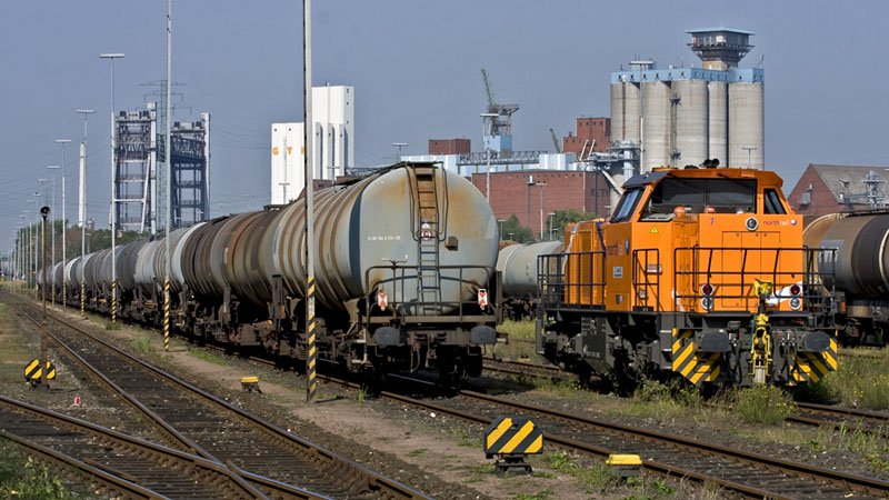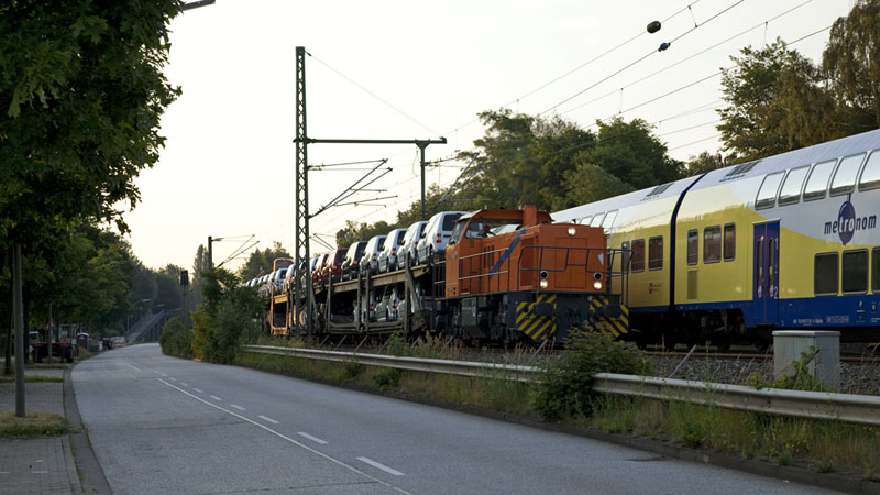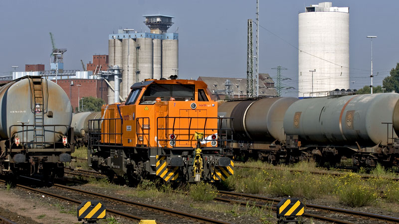 Die Northrail-Diesellok 271 025-9 brummte nach Waltershof.
