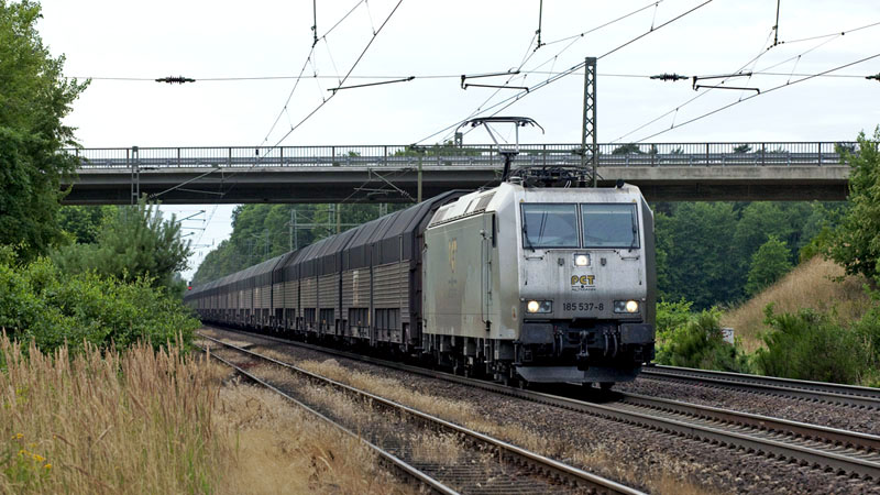 Ausnahmsweise fuhr der PCT-Autozug direkt von Hamburg Süd mit der 185 537-8.