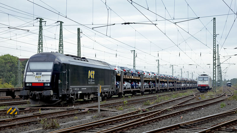 Einen Leerzug des Autologistikers PCT Altmann von Cuxhaven hatte die ER 20-013 am Haken.